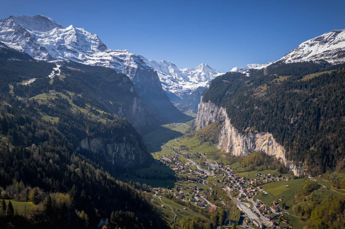 Interlaken  Intelaken is yet another place we always visit during our trips to Switzerland. This town is located between two lakes (Lake Thun and Lake Brienz) and surrounded by mountains. Interlaken is a dream for all outdoor enthusiasts visiting Switzerland. It’s a perfect base for couples who want to combine adventure and romance, and it’s very close to the Jungfrau region and some other stunning places in Switzerland.