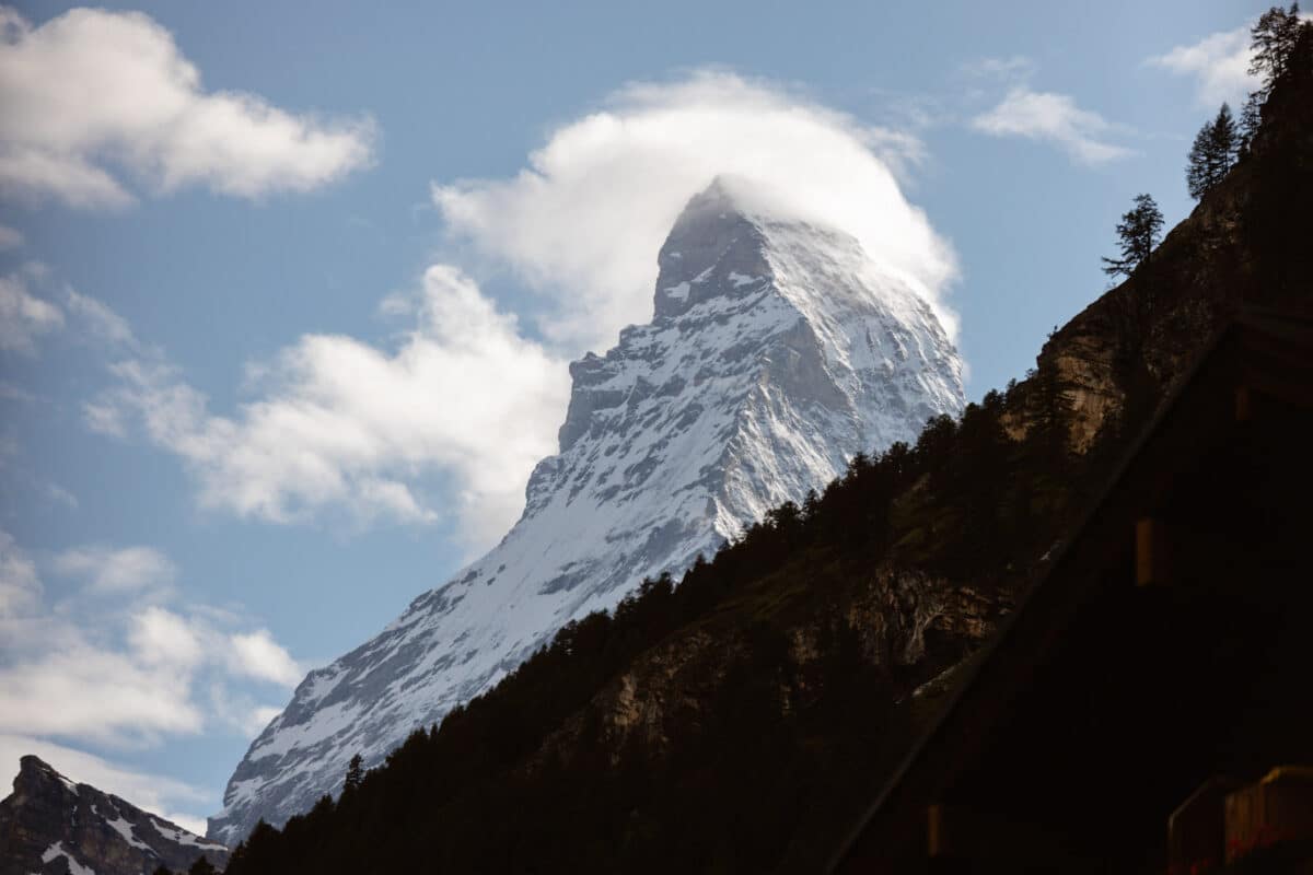 Zermatt & the Matterhorn  Zermatt is a small car-free alpine town where you can exchange vows with the iconic Matterhorn in the background. This place is accessible by train, and it’s charming year-round. Matterhorn is one of the landmarks of Switzerland, and this mountain dominates the landscape of this town.